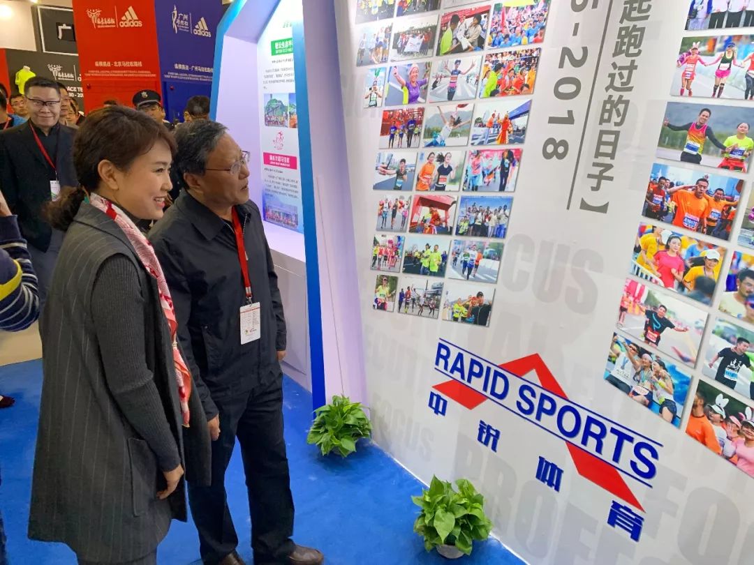 中國(guó)田徑協(xié)會(huì)主席段世杰蒞臨中銳體育展位參觀指導(dǎo),中銳體育總經(jīng)理劉曉磊陪同