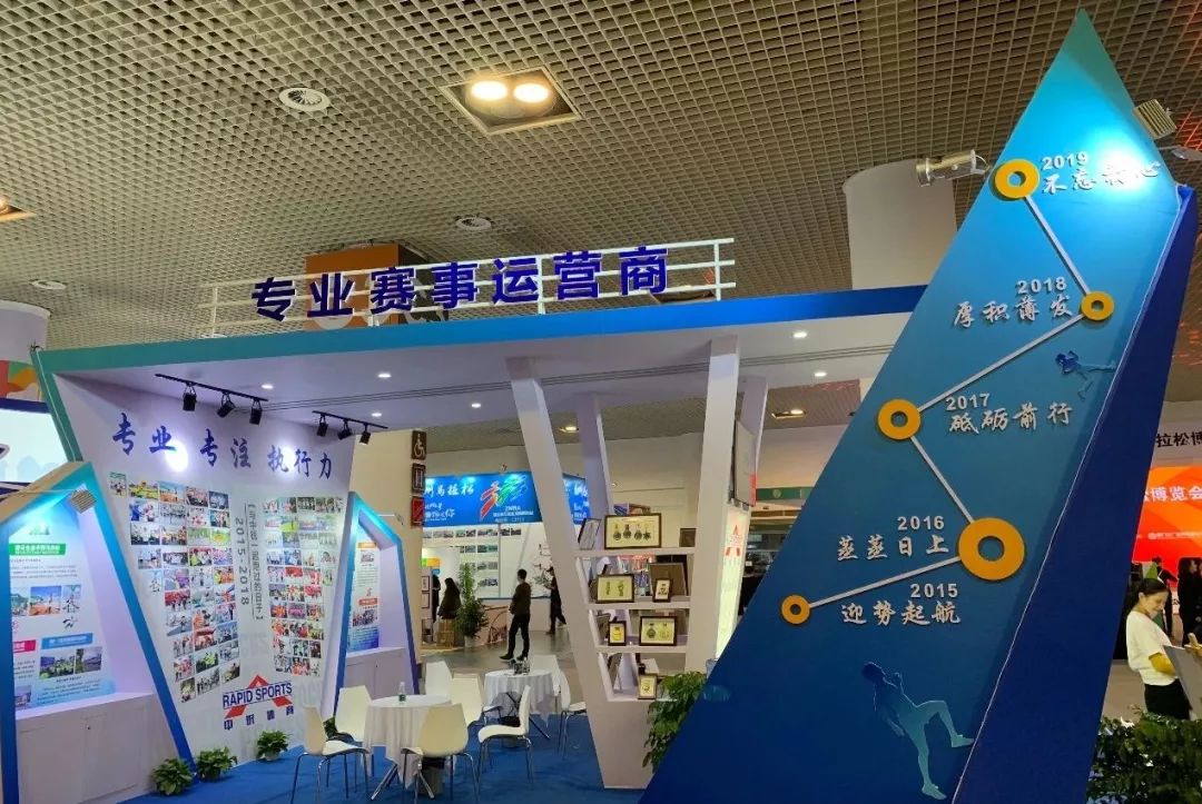 談及為什么選用藍(lán)色作為展位的主色調(diào)時(shí),中銳體育總經(jīng)理劉曉磊表示,中銳體育的logo由紅色和藍(lán)色進(jìn)行組合,但這次采用藍(lán)色是因?yàn)樽鲶w育賽事不僅要有紅色的激情,還要有藍(lán)色的睿智。目前非常紅火的馬拉松熱潮中,中銳體育也需要在懷揣激情夢(mèng)想的同時(shí),更加智慧地運(yùn)營(yíng)體育賽事,為社會(huì)提供更高水平和更好品質(zhì)的賽事,助力產(chǎn)業(yè)發(fā)展。