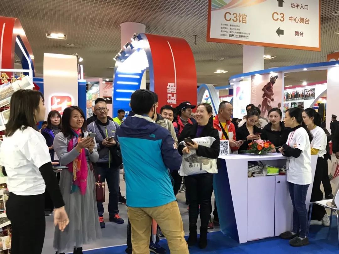隨后,眾多廈馬跑友來到了展會(huì)現(xiàn)場(chǎng)。憑借與眾不同的互動(dòng)游戲與創(chuàng)新的展位布置,中銳體育展位吸引了跑友和觀眾的參與以及參展商駐足咨詢,現(xiàn)場(chǎng)畫面十分火爆。