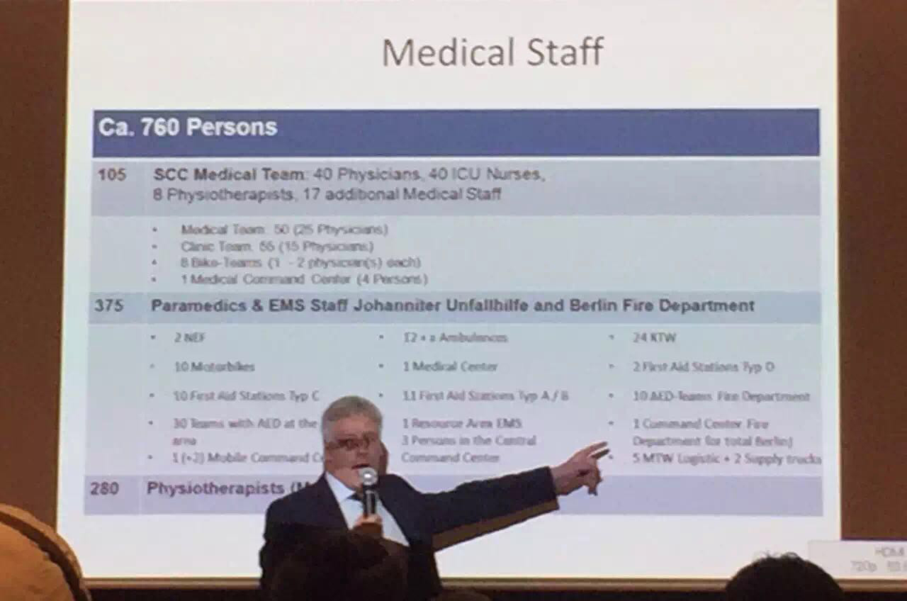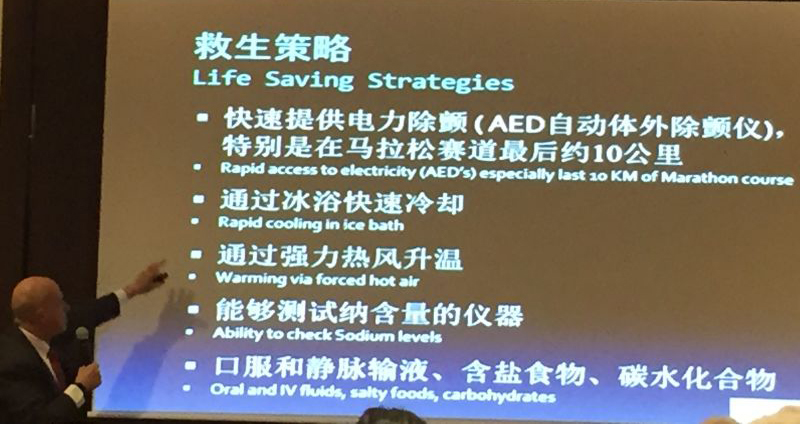 本次峰會特別邀請三位世界頂級馬拉松的首席醫(yī)療官——來自紐約的Stuart Weiss博士、來自東京的Hideharu Tanaka博士以及來自柏林的Lars Brechtel博士。會上,三位博士與參會的政府代表、保險公司以及體育賽事的安全保障方和合作方通過探討國際案例的方式,進(jìn)行健康與安全領(lǐng)域的觀點(diǎn)與學(xué)識的交流分享,包括醫(yī)療支持系統(tǒng)(例如PAD)、醫(yī)療危機(jī)管理、馬拉松應(yīng)急預(yù)案等等。