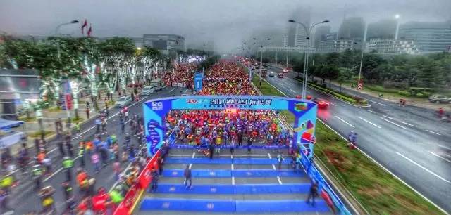 1月8日上午7點(diǎn)30分,隨著?谑腥嗣裾形N⒊(wù)副市長巴特爾先生、?谑腥嗣裾笔虚L孫世文先生、?谑腥嗣裾泵貢L林明先生、海口市文化廣電出版體育局局長富天放女士、富力地產(chǎn)集團(tuán)副總裁兼海南區(qū)域公司董事長趙沨先生以及中國平安人壽保險(xiǎn)股份有限公司總經(jīng)理助理秦旭輝先生等領(lǐng)導(dǎo)一行人于海航日月廣場(chǎng)起點(diǎn)處一同鳴槍,近1.5萬名海馬參賽選手用奔跑的形式拉開了2017平安·富力海口馬拉松賽序幕。