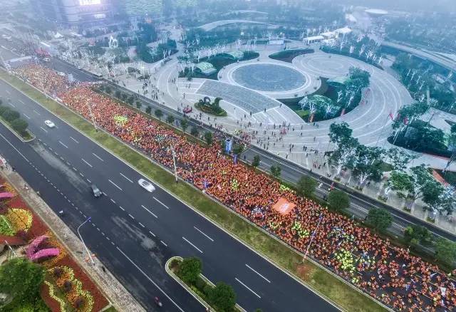 近1.5萬名選手匯成的歡樂橙色海洋將于起點(diǎn)出發(fā)