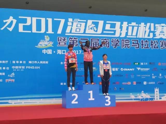 2017平安·富力?隈R拉松女子全程前三于頒獎(jiǎng)臺(tái)上合影留念