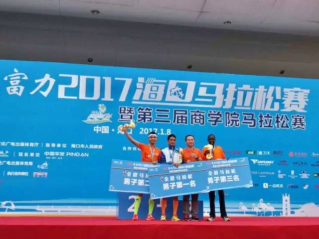 富力地產(chǎn)集團(tuán)副總裁兼海南區(qū)域公司董事長趙沨先生為2017平安·富力?隈R拉松男子全程前三頒獎(jiǎng)